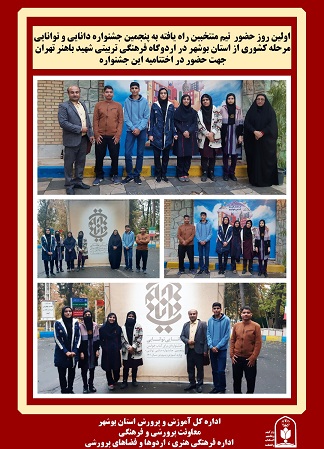دانش آموز عزیز نجمه اسماعیل زاده راهیابی شما به مرحله کشوری جشنواره کتابخوانی دانایی و توانایی در اردوگاه فرهنگی تربیتی شهید باهنر تهران را به شما،خانواده محترم ،مجموعه دانش آموزان و کارکنان آموزشگاه سمیه شهر سعدآباد تبریک و تهنیت می گوییم.