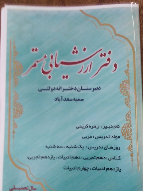 در راستای اجرای شیوه نامه ارزشیابی مستمر همکاران آموزشگاه اقدام به طراحی و چاپ دفتر کلاسی نمودند که در اینجا از زحمات خان ها طیبه دشتی شجاع و ساره کفایی طراحان دفتر جدید کلاسی تشکر بعمل می آید.